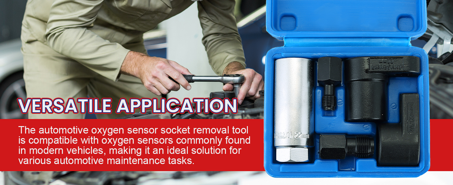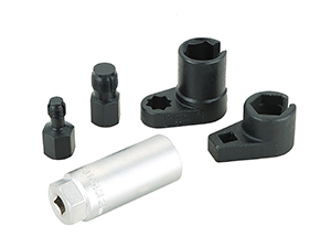 The oxygen sensor socket removal tool set includes 2 thread chasers, 1 oxygen sensor socket, and 2 vacuum switch sockets.