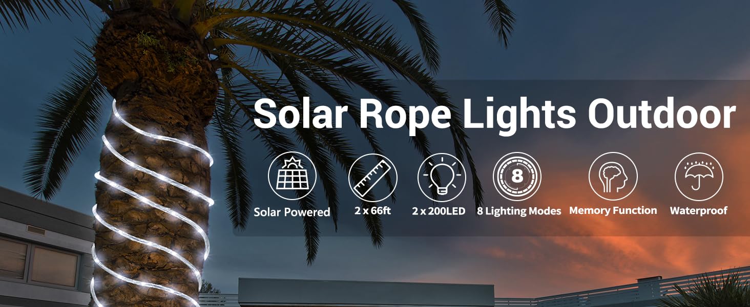 The solar rope lights are IP65, great for rainy or snowy weather and humid environments. It is more tough than other solar string lights, it can meet your different indoor and outdoor decor needs throughout the year.
