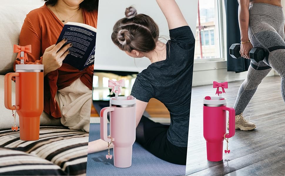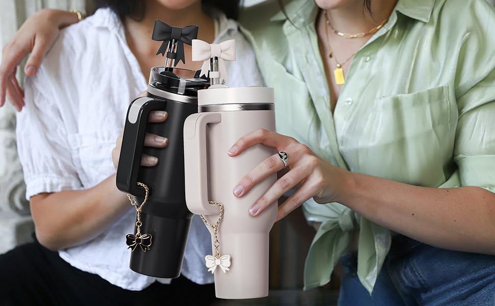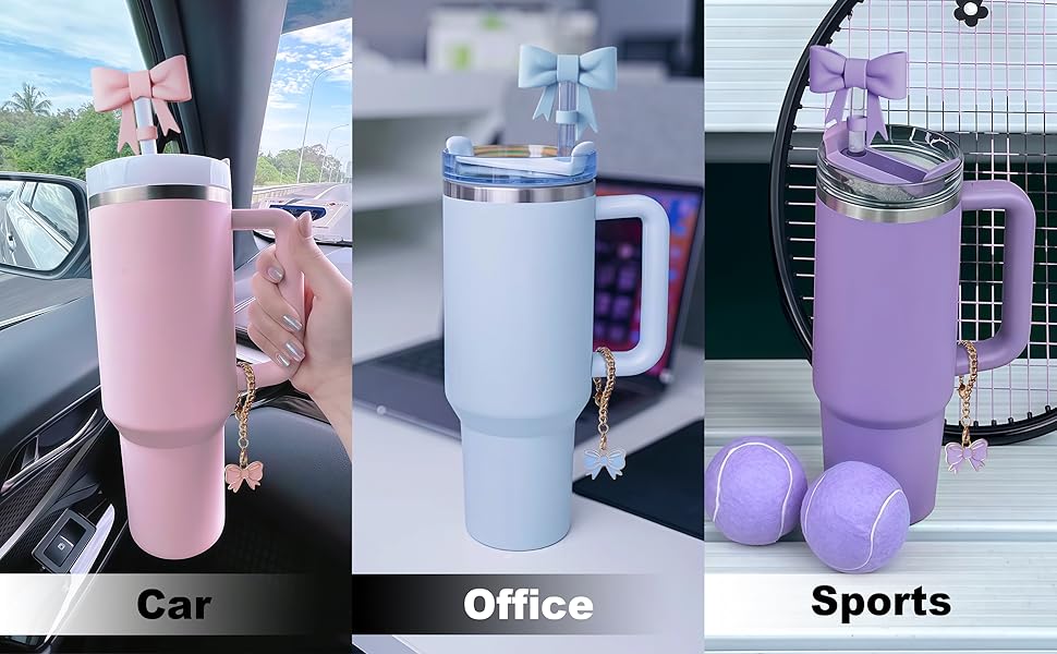 With these stylish bow charms and straw toppers, you'll never worry about mixing up your cup again, whether you're at the gym, library, or other public places.