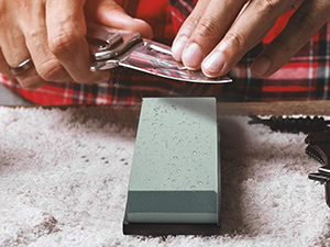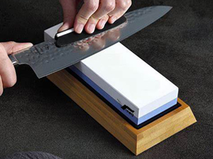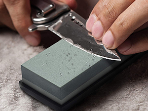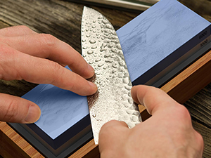 Wipe blade and stone after. Strop and Polishing. Clean stones with water, dry. Store dry to prevent damage.