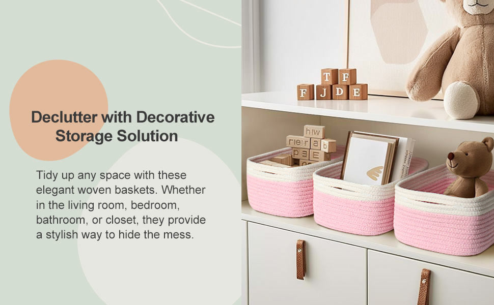 Tidy up your home with this set of 3 woven rope baskets—designed to blend minimalist aesthetics with everyday practicality. Each basket measures 11.81" x 7.87" x 4.72", offering a compact space to store your daily essentials. Use them in your closet for organizing socks, in the bathroom for storing towels or toiletries, or in your nursery to keep baby supplies neat and accessible.
