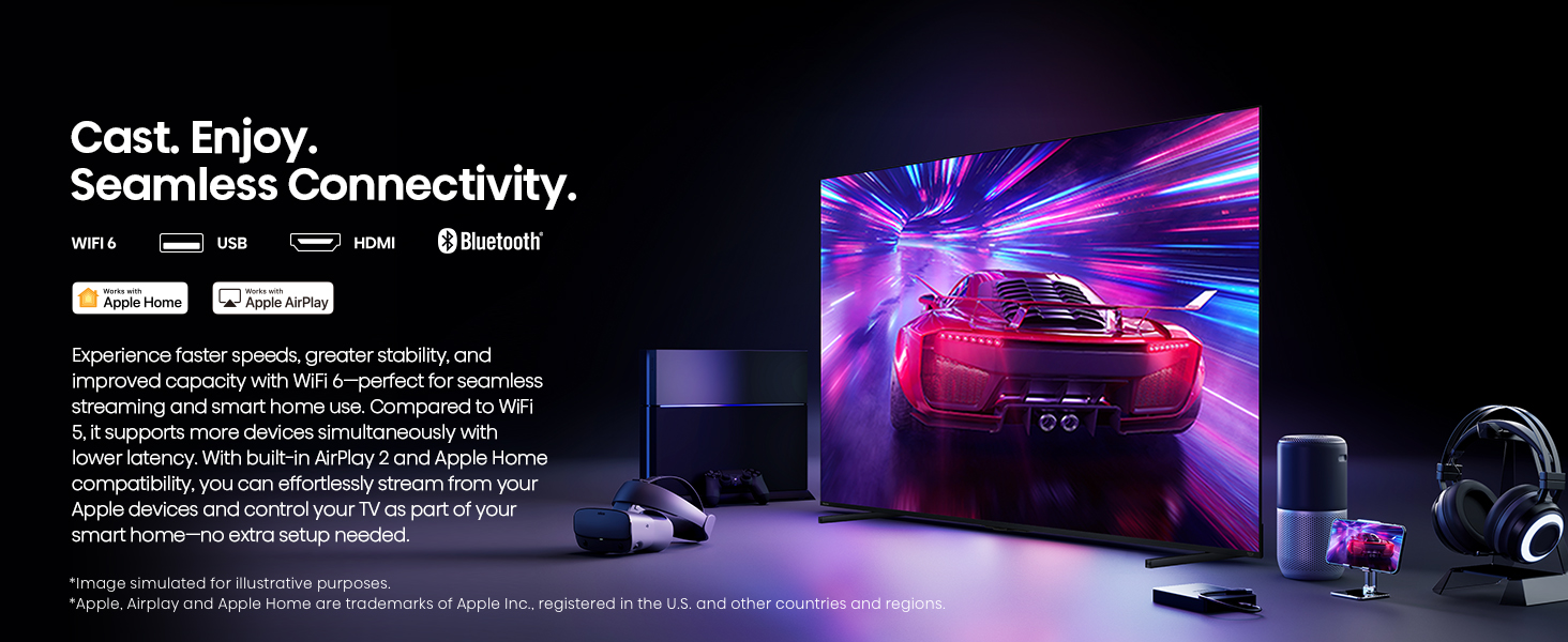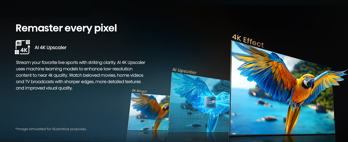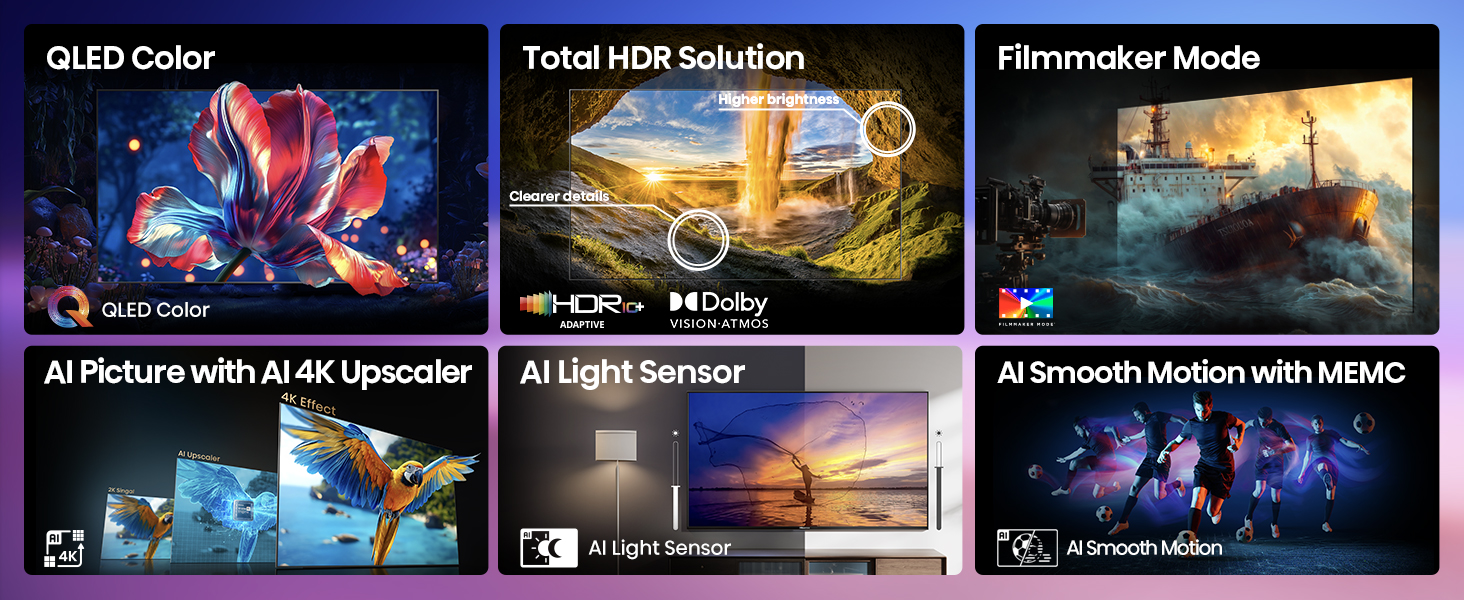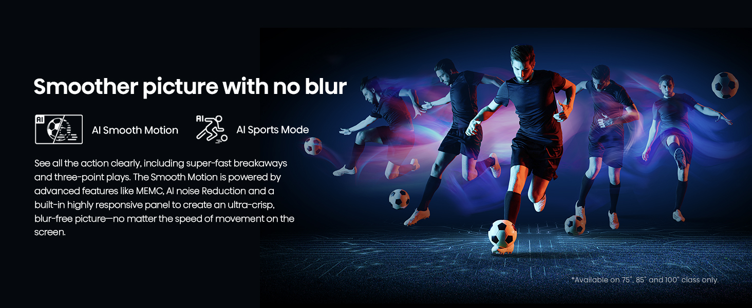 The Hisense E6 Series brings the magic of the movies home. With QLED Color delivering over a billion vibrant shades, every scene feels richer, deeper, and more lifelike — whether you're watching a late-night drama or a weekend blockbuster. Dolby Vision HDR and Dolby Atmos combine stunning visuals with immersive sound, so you don’t just watch the story — you feel it. And from explosive action films to high-speed games, AI Smooth Motion with MEMC ensures fluid, stutter-free scenes for a seamless, uninterrupted experience.